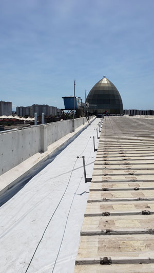 Georevest, manufactura e instalación del revestimiento Geomembrana. Atóxico, específico para la impermeabilización de torres de agua, Estación de Tratamiento de Agua, silos, forjados y pisos industriales. Revestimiento fabricado, probado y enviado al sitio de instalación en el formato y tamaño adecuado al proyecto. Flexible y resistente, posee instalación flotante, sin la demanda de tratamientos complejos del sustrato, lo que proporciona sensible ahorro de tiempo e inversión. Durable, garantiza la estanqueidad.