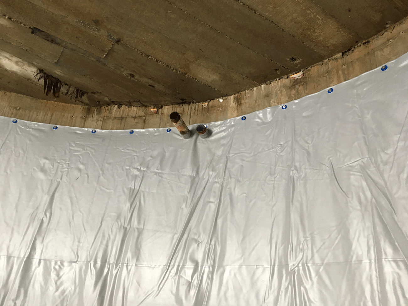 The Bag has floating installation, it is mechanically anchored only in the upper perimeter of the tank. This installation ensures that the coating go along with eventual movements of the structure without leakage.