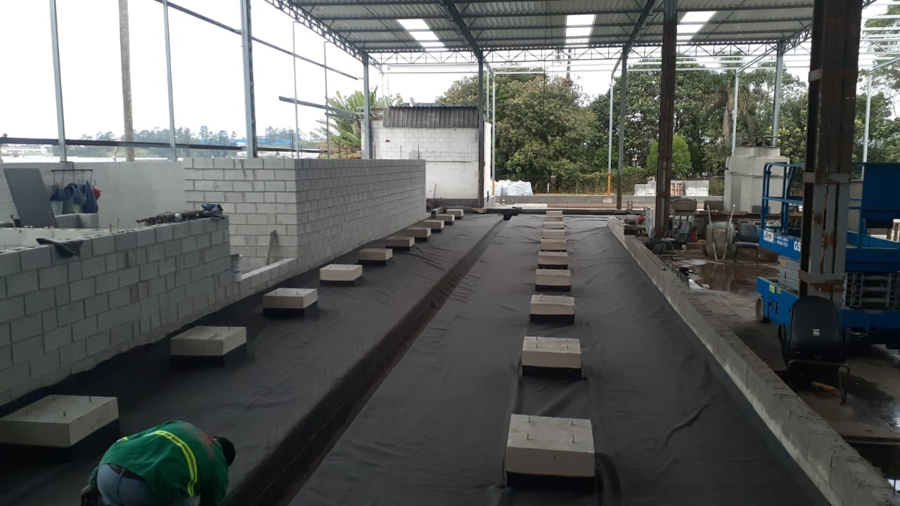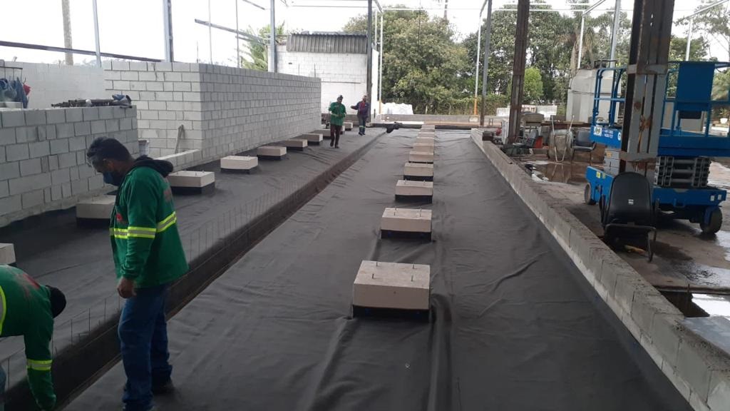 Georevest, manufacture and installation of Engineered Blanket. Specific to waterproofing Industrial Floors. Coating Prefabricated, tested and sent for installation in the format and dimensions suitable for the floor. Flexible and resistant, it does not require complex surface treatments, supports the work of the structure, provides great savings in time and investment. Durable, ensures watertightness.